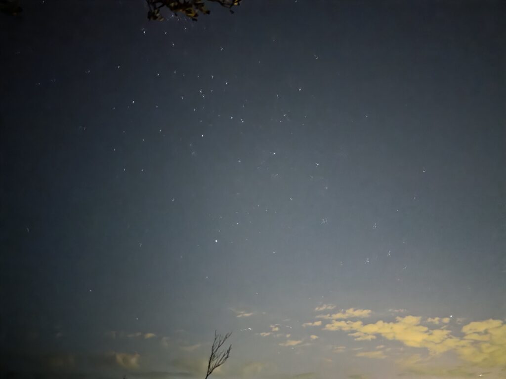 然而直到天完全黑透,我们的桶里依旧空空如也,倒是虾子被鱼偷掉几只。旁边两个路人倒是各钓上一条小鱼(而且有一条还是鳐鱼?),一个路人因为觉得只有一条鱼带回去觉得很麻烦,干脆直接送了我们(就当作没有成空军吧)。